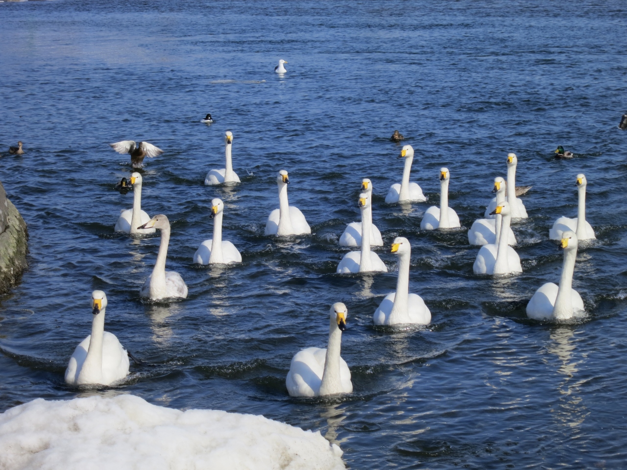 売店で売られている白鳥の餌以外はあげてはいけません。