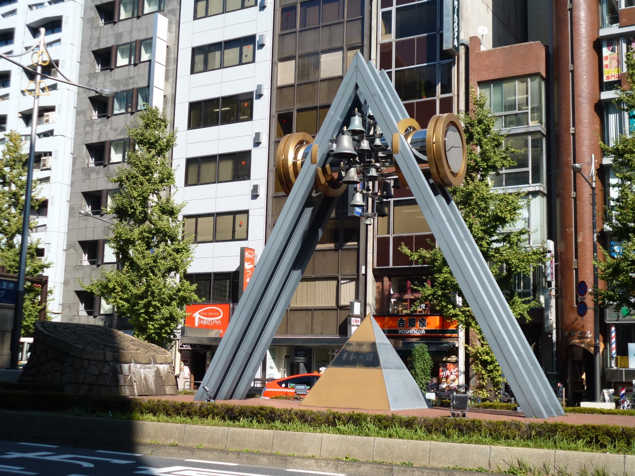 中央通りを日本橋から南下していくと、八重洲通りに差し掛かったところで「平和の鐘」が視界に入ってきます。