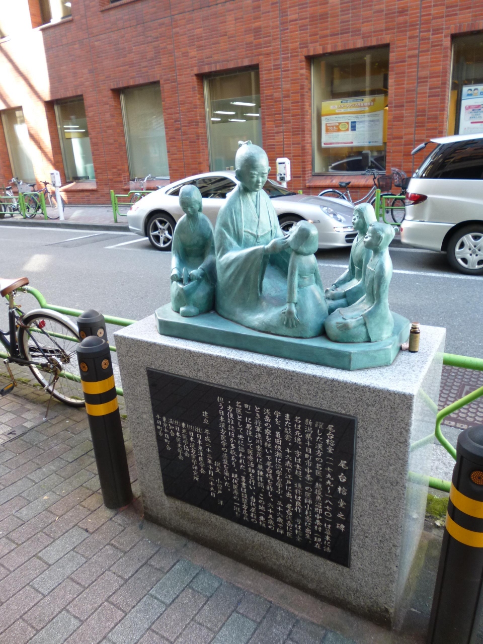 東京駅の八重洲口を出て道を一本渡り、裏通り沿いを歩いていると「尾台榕堂之碑」が目に入りました。よくあるタイプの史跡ではなく、視覚的なインパクトが大きいので目を引きます。無機質なオフィス街の裏通りにあることがなかなか面白く感じます。