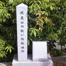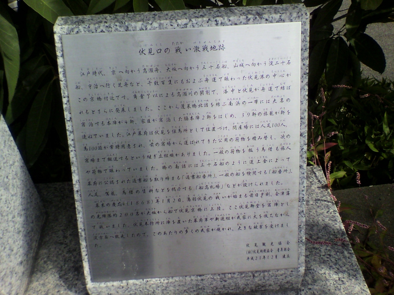 伏見の寺田屋からもほど近い京橋のたもとに「伏見口の戦い激戦地跡」という石碑が建っています。