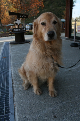 お店の前には、看板犬がいます。