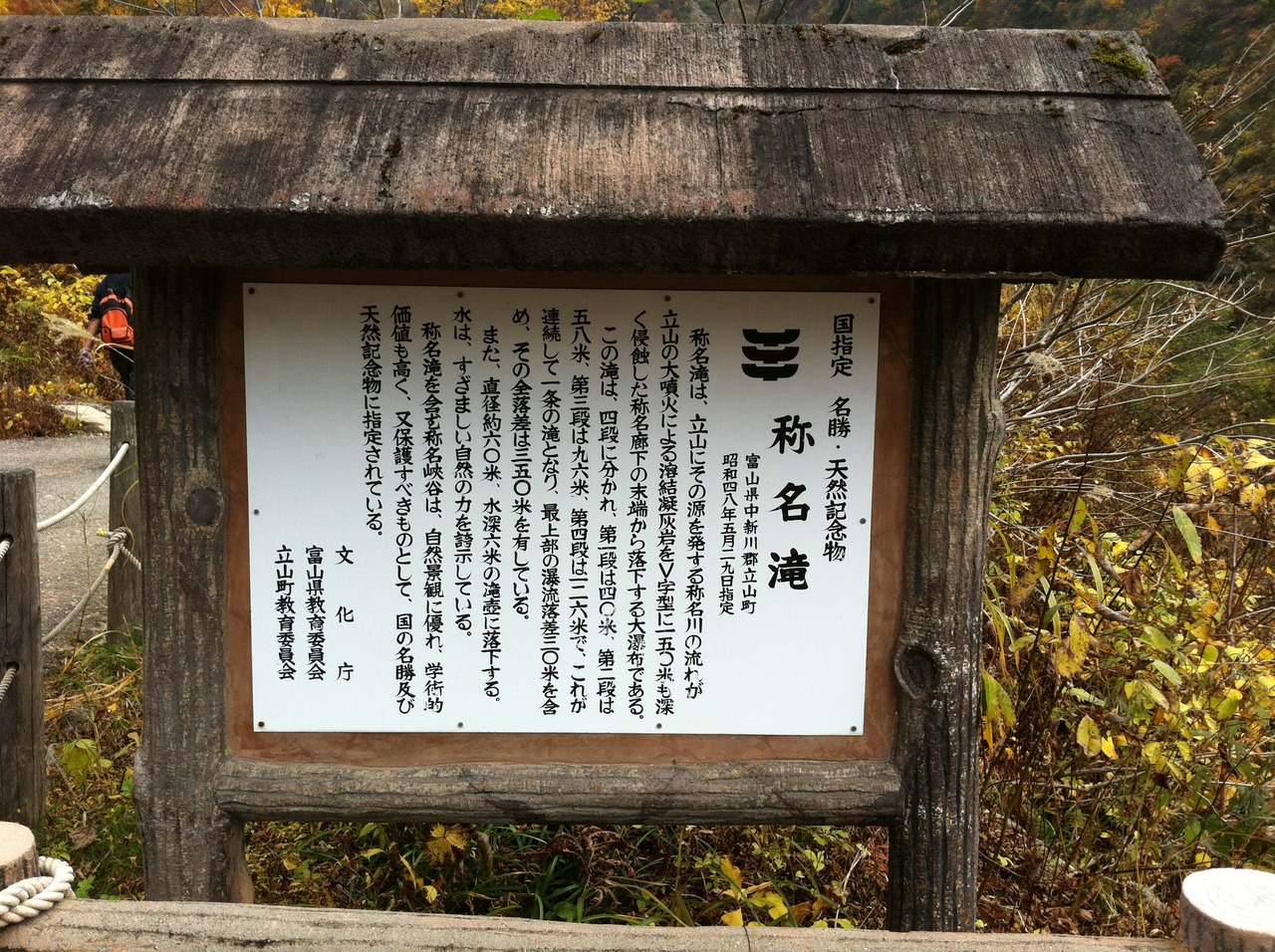 紅葉見物も兼ねて訪問しました。やはり富山市街地よりも気温は低く上着持参しました。駐車場は1カ所でそこから1.3キロほど、アスファルトで整備された道を歩いて登ります。それほど急な坂道ではないので、お年寄りの方やベビーカーの方も結構いらっしゃいました。ハイヒール女子は結構辛そうでした、笑。ひたすら登り、橋を渡ると目の前に落差日本一の迫力ある称名滝があらわれ、疲れが吹き飛びました。マイナスイオンを浴びてリフレッシュできました!