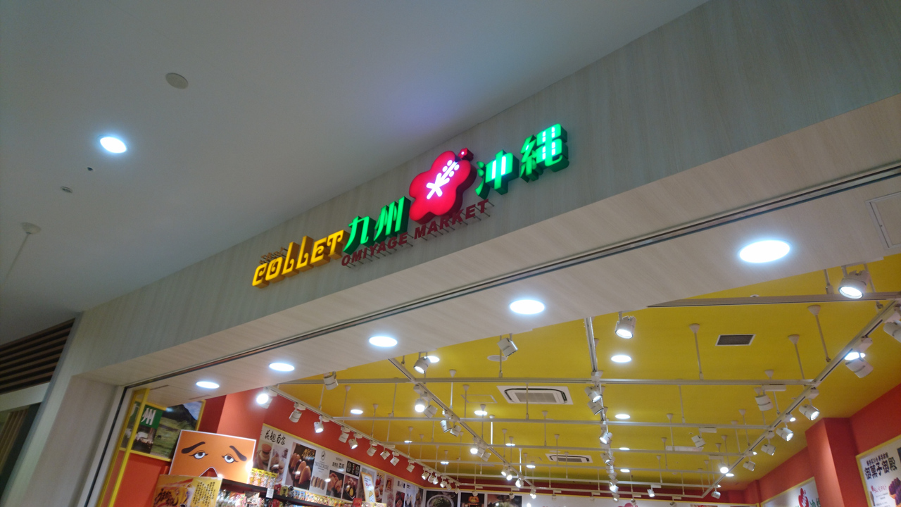 ららぽーとTOKYO BAYの1階に各地のアンテナショップが並んでいるエリアがあり、その中に九州、沖縄の名産品が一緒に並んでいるお店がありました。