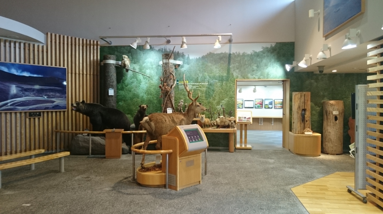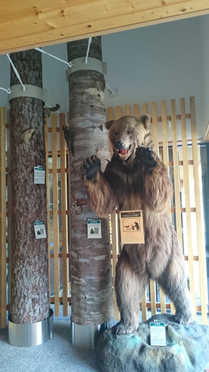 黒岳ロープウェイ乗り場のすぐ近くにあります。紅葉の見頃スポットなどの情報がほしくて入館しましたが、いきなり大きな熊の剥製に迎えられました。館内にもいろいろな展示があり、周辺の登山・トレッキングの情報や、このあたりで見られる動植物の紹介、ビデオ上映などなかなか楽しいセンターでした。