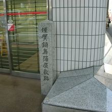 四条通の南側の歩道、島屋と大丸のちょうど中間くらい、SMBC日興証券ビル正面の右手にあります。石碑があるだけでほとんどの人は気が付かずに通り過ぎていきます。