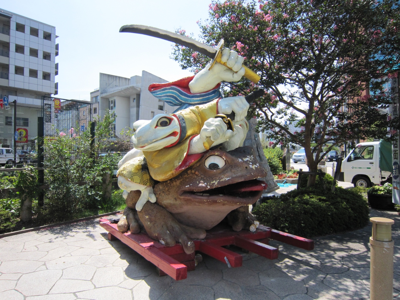 雑貨や骨董やカフェといったものから、地元商店街のように八百屋や花屋もありました。カエルのオブジェがいっぱいありました。