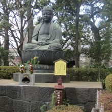 阿弥陀如来像は、東京都台東区浅草二丁目、浅草寺の奥のほう影向堂のそばにありました。