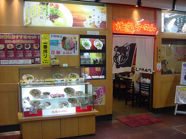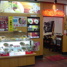 神戸市の中心市街地である三宮駅前にある地下街「さんちか」に入るラーメンショップ。ヒグマのイラストの暖簾が出迎えてくれました。ラーメンの中ではコク味噌ラーメンがこの店らしい一品。どのラーメンにもプラス260円でチャーシュー丼とセットができます。