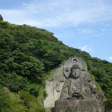 鋸山の東口から石段を登って行くと、大仏広場です。視界が開けてその先に山をバックにば~んと大仏様が現れます。