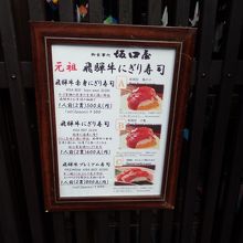 食べ歩きのできる飛騨牛にぎりを食べれるお店。