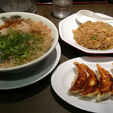 新青梅街道の石神井台付近の上り線(新宿方面)沿いにあるラーメンチェーン店。滋賀に本店のある全国規模のチェーンで、東京初進出のお店かここです。土休日は結構混雑し並びますが、回転は早め。店員さんが列にいるお客さんのオーダーも取ってくれます。駐車場も14台分あります。ラーメンは単品メニューとラーメンつきの定食があり、定食の種類もアジフライとかコロッケなど豊富。お店は、カウンターと座敷席があり、家族連れも多いです。関心のラーメンですが、見た目ほど脂っこくなく、細麺によく絡みます。スープは鶏ガラベースで一味唐辛子がアクセント。青ネギが関西発祥のラーメン屋さんぽい。味は濃いです。チャーハンはどす黒い色の通り味も濃い目。好みが分かれると思いますが、ラーメンも味が濃いので、もう少し薄めでもいいかと。餃子は具が少なく皮を食べている感じ。ラーメンのレベルがまぁまぁなので、そのほかのレベルも上がればもっといいと思います。無料の梅干が肉厚のもので、口直しにはちょうど良かったです。