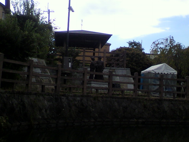 三栖閘門のそばの「伏見みなと広場」や、体育館などがある「伏見港公園」などもあって、わかりにくいけど、こちらの公園は、十石舟が通る川沿いにある「龍馬とお龍 愛の旅路像」が建つ小さな公園です。