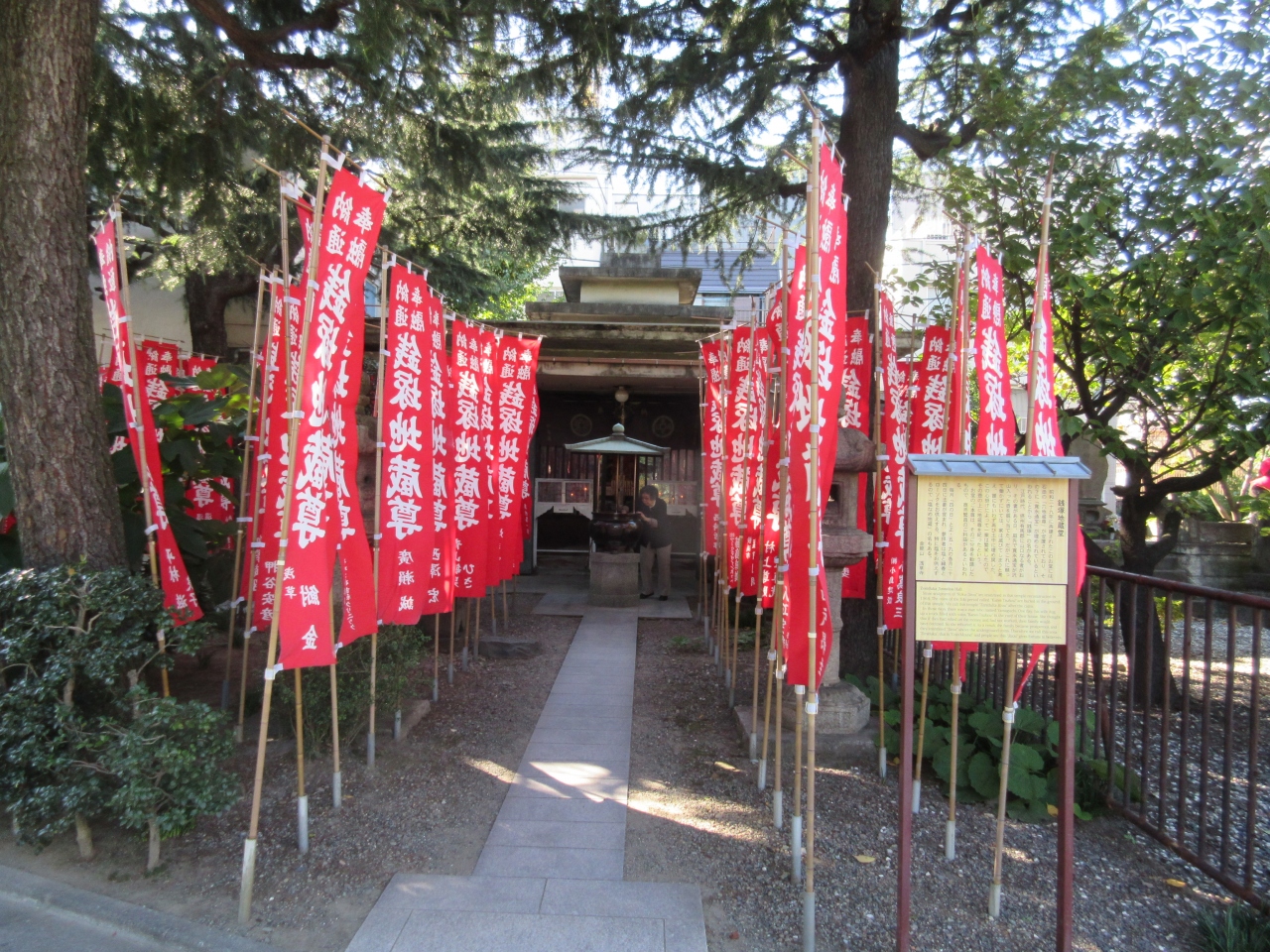 浅草寺から花やしき方向に向かった裏手側あたり、銭塚地蔵尊がありました。赤いのぼりがずらり、遠くからでも人目をひいてわかりやすいです。金運がアップするというありがたいご利益に惹かれてか、私共々訪れる人が絶えないようです。