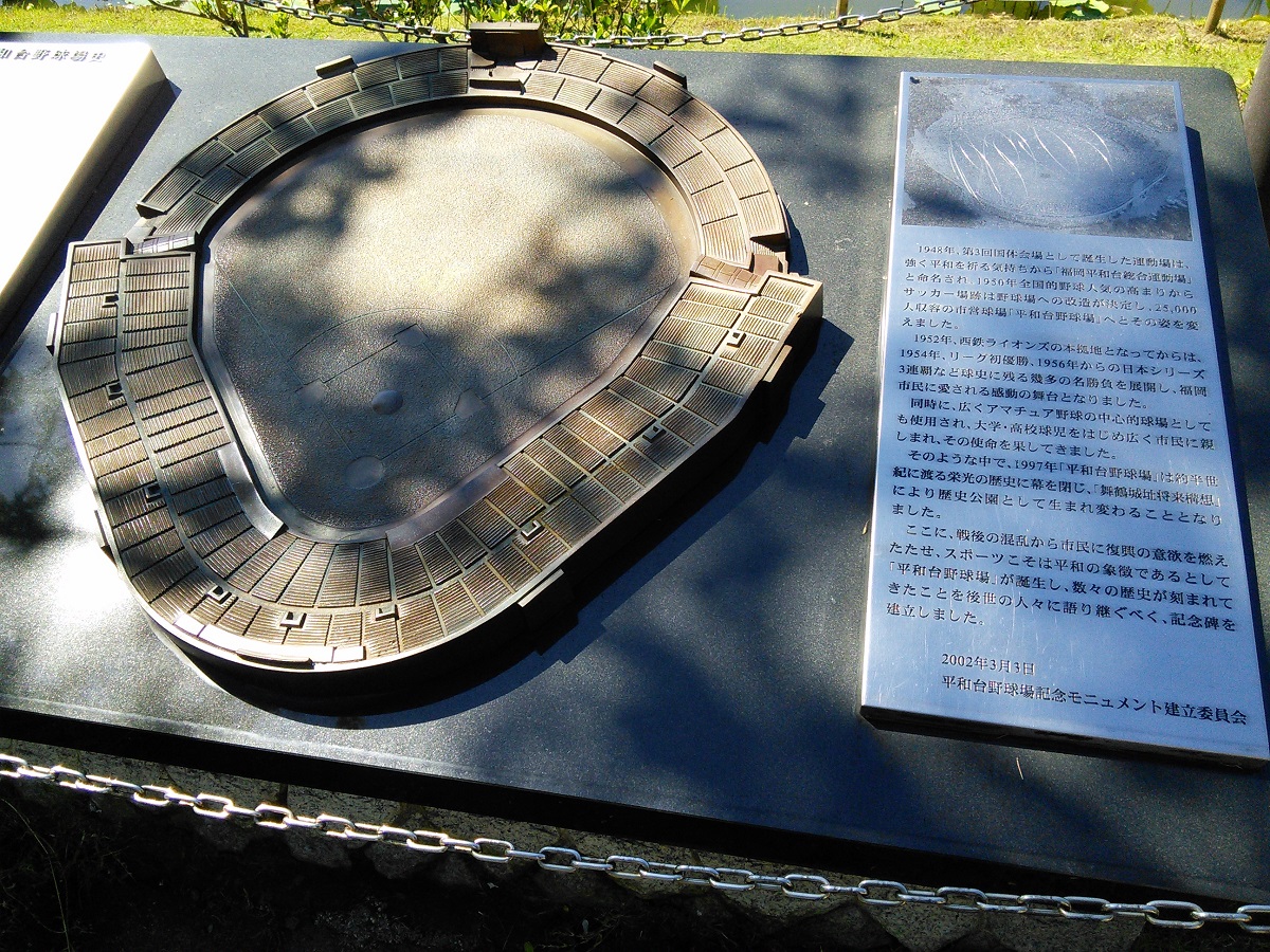 かつて福岡城内にあった平和台球場がなくなったときに忘れないように作られたものですが、当時のことを知っている世代も少なくなっていく中で、記念碑だけが時を刻んでいくのでしょうか。