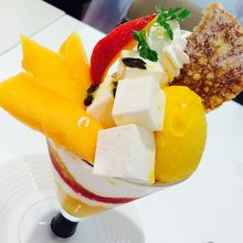 日曜日の13時半頃。15分ほど待って店内へ。季節によってフルーツが異なりますが今回はマンゴーがメインでした。このマンゴーが新鮮で本当に美味しい!マンゴーアイス、ゼリーなどフルーツとの相性ばっちり!デザートにオススメです。