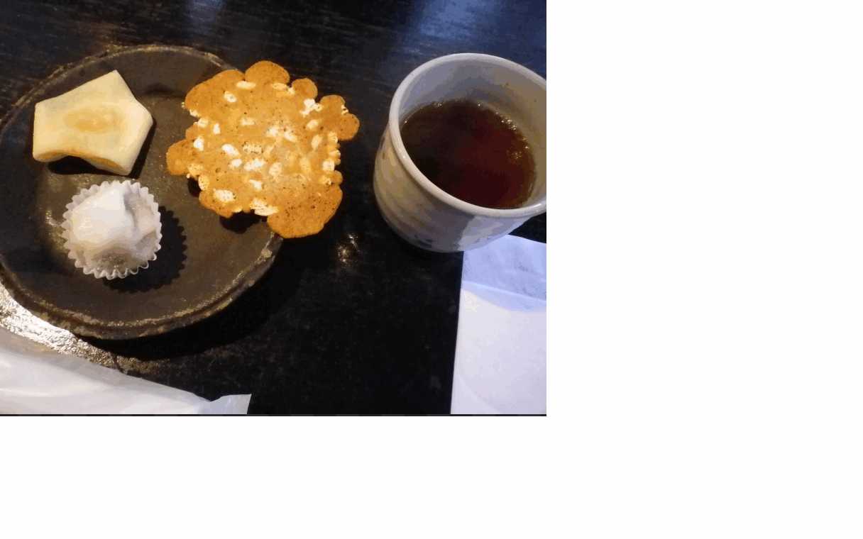 まず、3種類の和菓子の試食を香ばしいほうじ茶と一緒に楽しみました。
