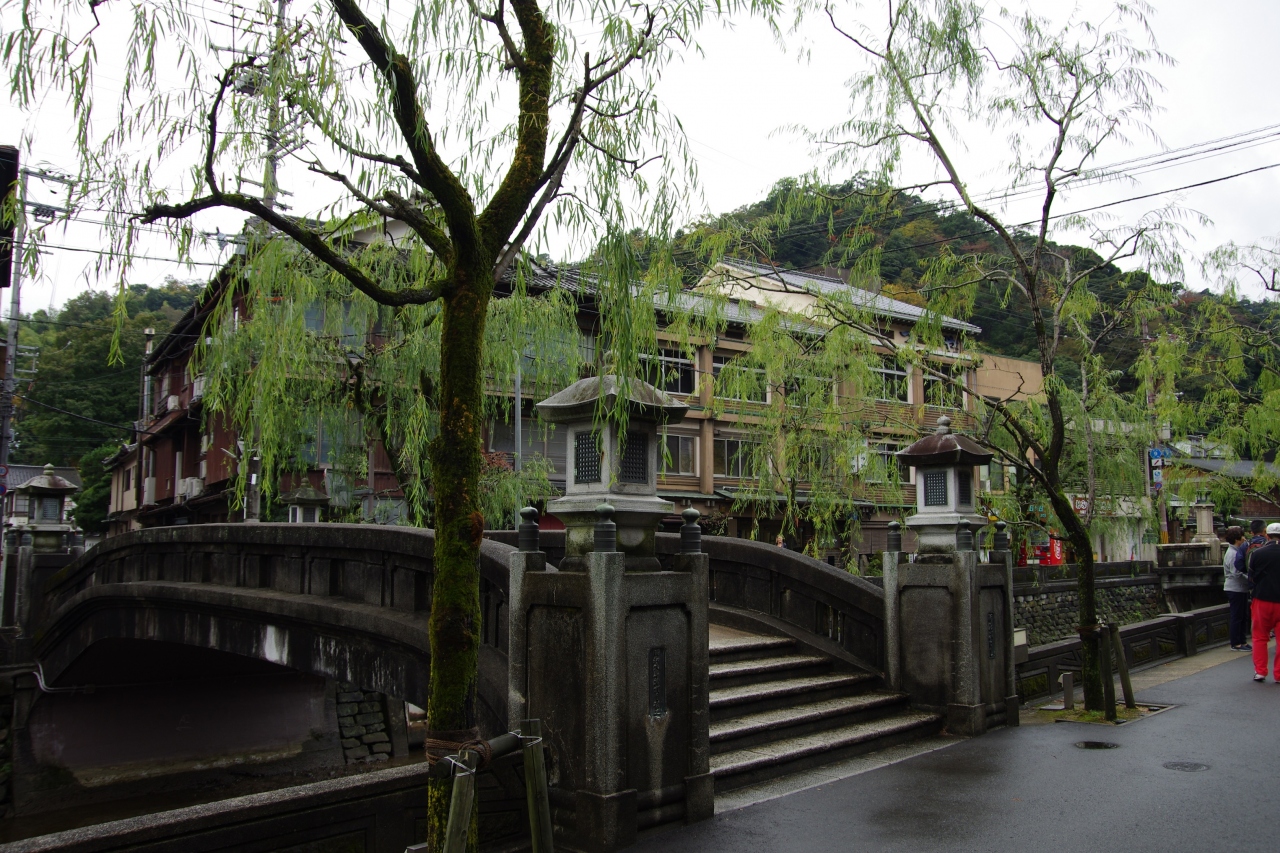 伊根の舟屋に泊まって、二日目は雨模様のため竹田城址行きをやめて、こちらの城崎温泉にやってきました(しかし遠い…伊根からたっぷり1.5時間かかった)。