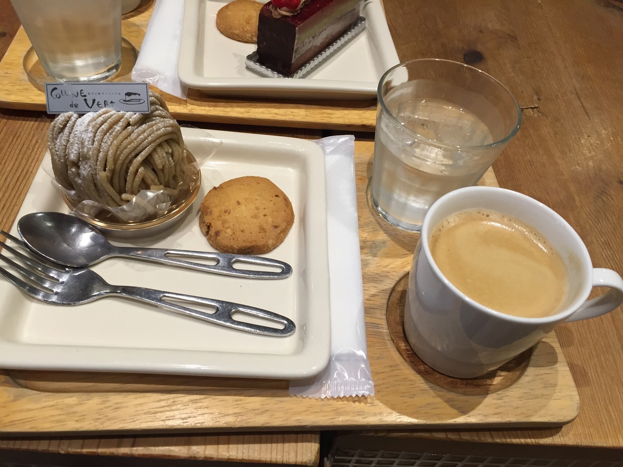 ブレンドコーヒー400円とモンブラン480円、サービスで焼き菓子を1個付けてくれました。