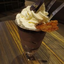 「ショコラ・グラッセ・リエジョワ」というドリンクとパフェの中間のようなやつと、ケーキセットを頼みました。