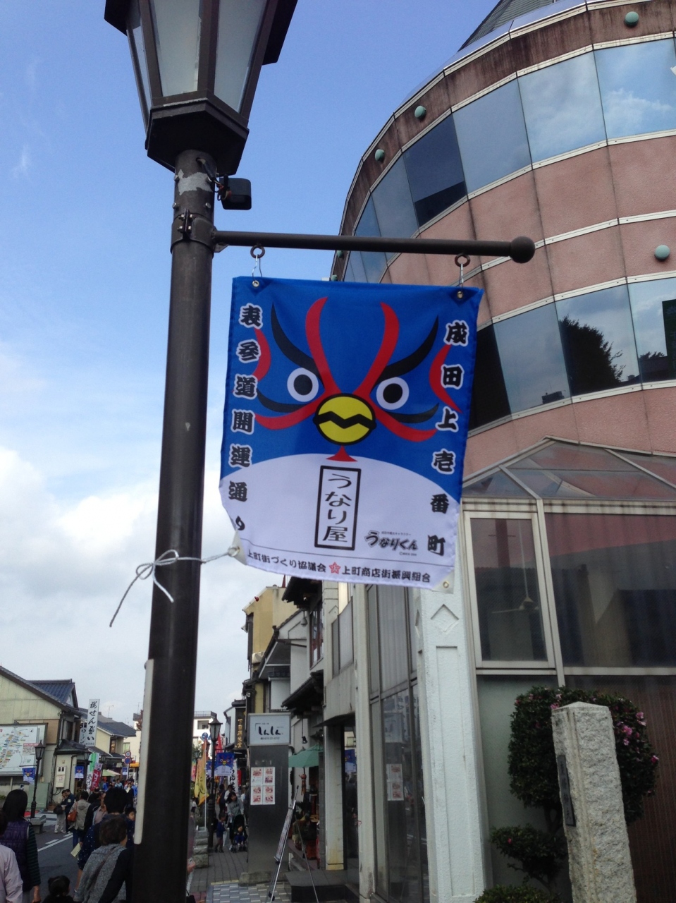 成田山新勝寺から続く登り坂に位置している商店街で、総門近くは歴史を感じる建物があって雰囲気がありました。鰻店やお煎餅店、漬物店が並んでいます。京成成田駅やJR成田駅に近づくにつれて新しい建物が多くなっていました。ご当地キャラクターのうなりくんののぼりがかわいいです。