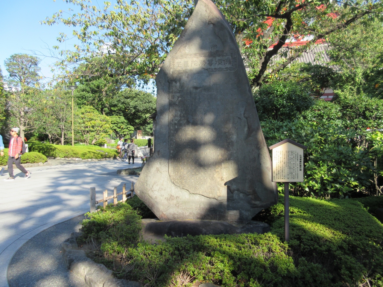 浅草寺境内に仏頂尊勝陀鑼尼碑があります。元治元年(1864年)の造立で、仏頂尊勝陀鑼尼とは唱える人に息災延命などのご利益を授けるとされる尊いお経の事だそうです。碑自体に梵字が刻まれています、存在感が有りました。