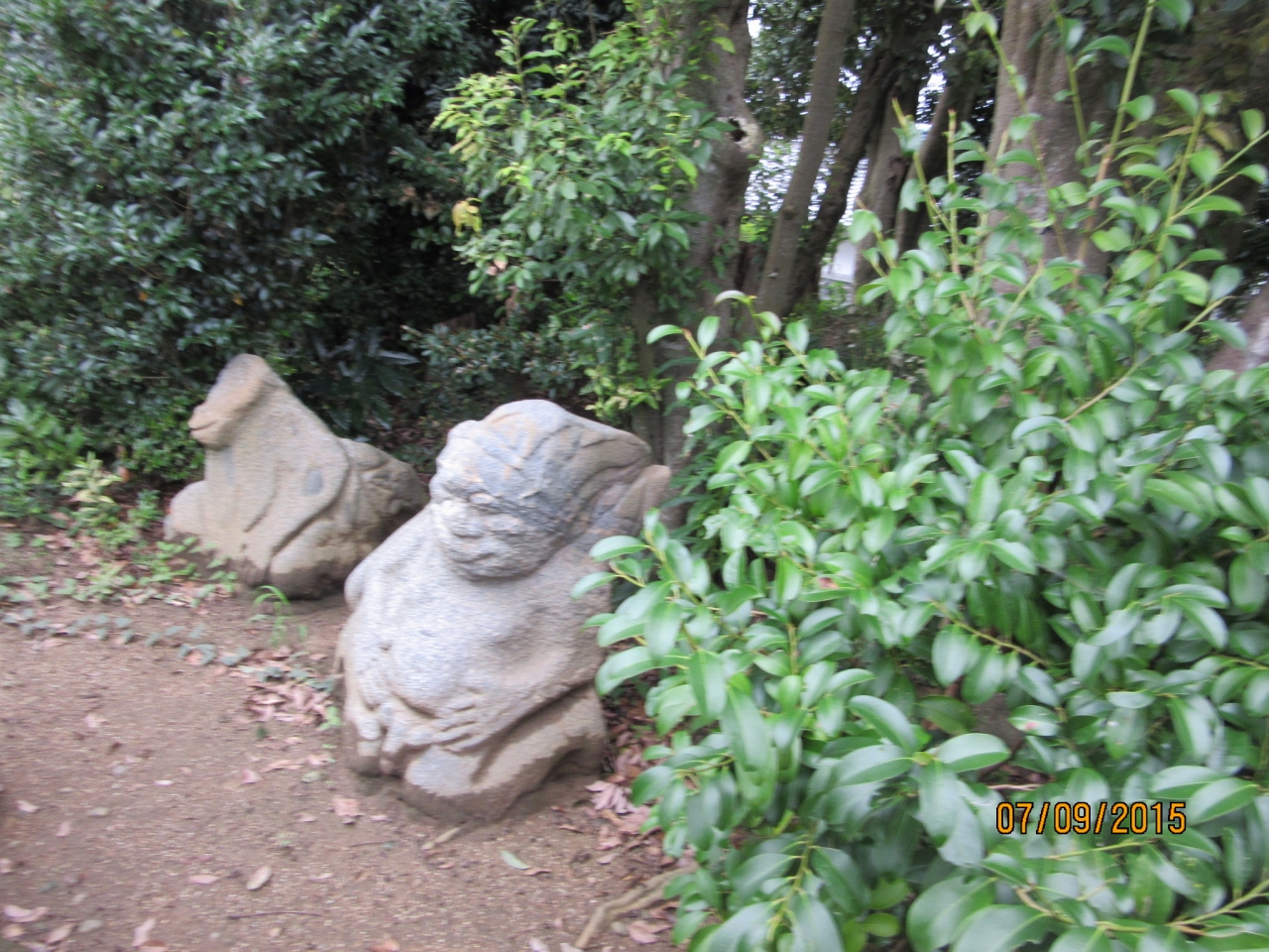 の前にあり柵に囲まれているので全体は良く見えませんが、4対あり一つは明らかに猿のような顔をしていて、誰が何の為に作ったのか想像すると楽しい。