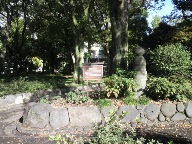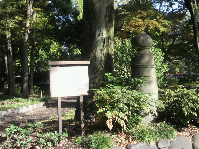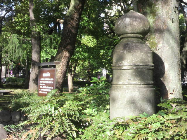 日比谷公園の鶴の噴水の北側に、京橋の欄干柱が置かれています。