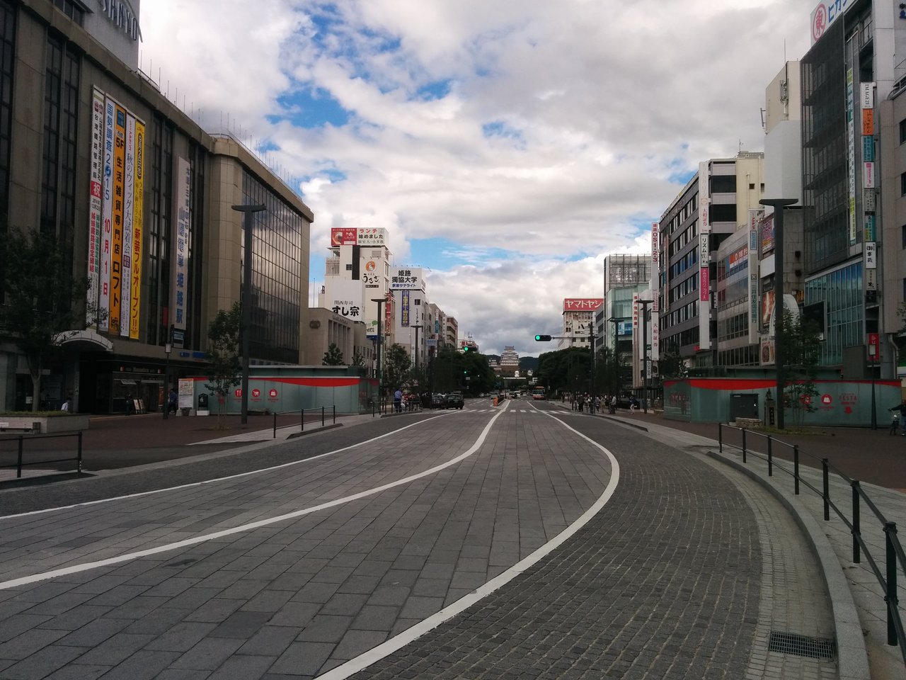 JR姫路駅駅から大手前通りをのんびりと姫路城方面に歩いて15分位の姫路城正面手前右手に広々とした公園がありました。