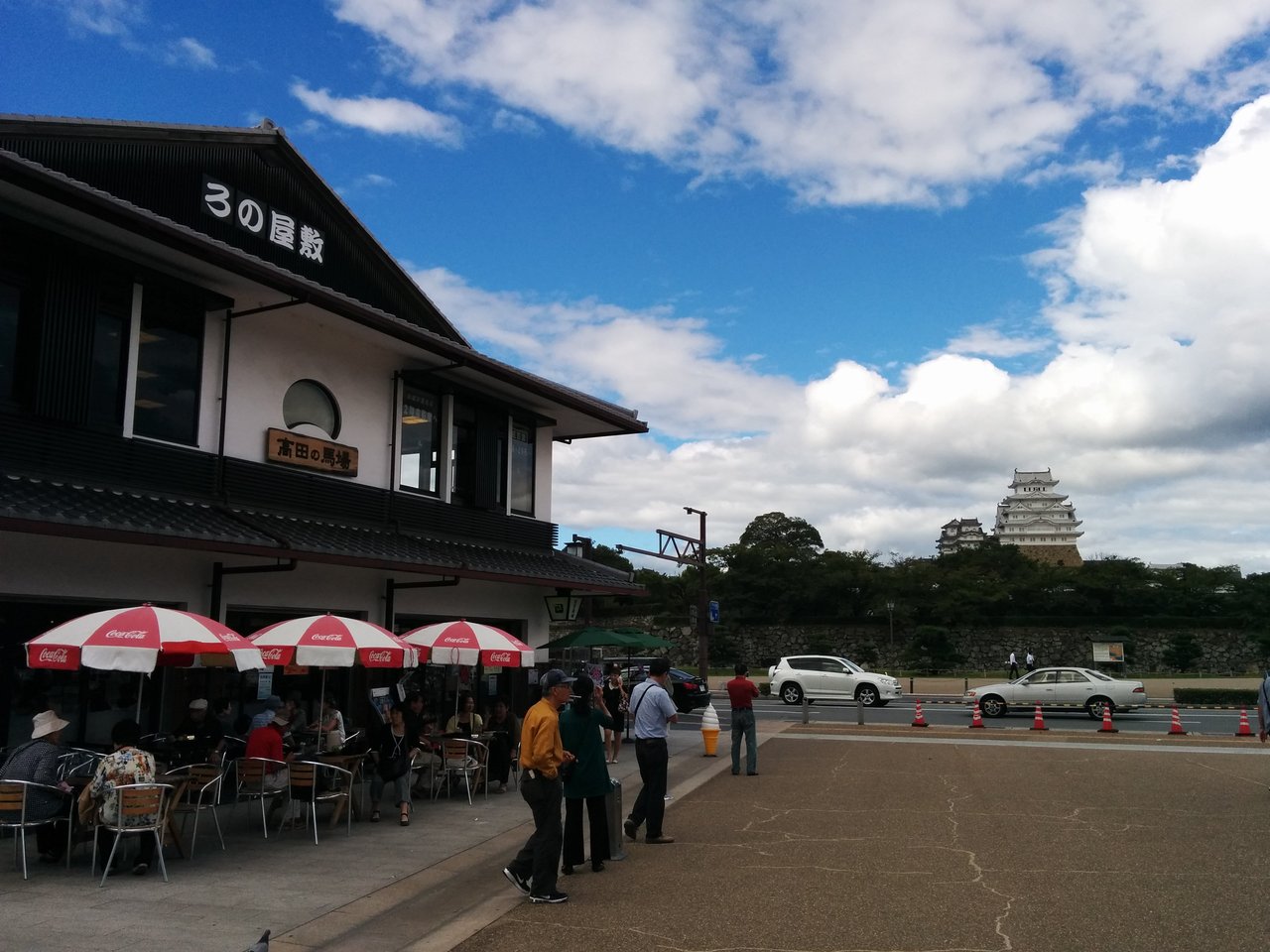 公園正面の姫路城見学後、真向かいのお土産物屋さんでジュースを買い、のんびりと公園で休憩させていただきました。