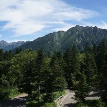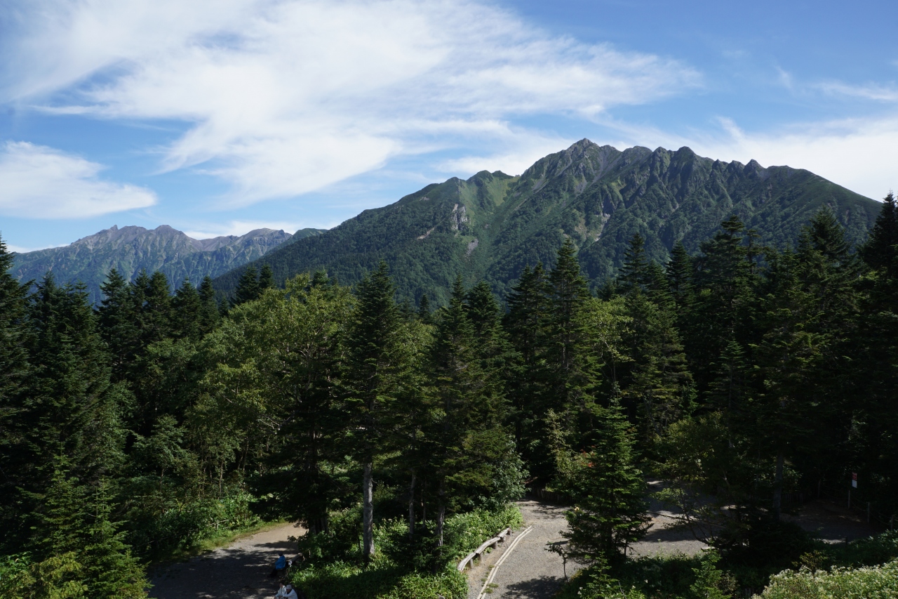 新穂高ロープウェイの西穂高駅の展望台からは、北アルプスの山々のパノラマを望むことができますが、西穂高岳も北アルプスを代表する山の一つ。深い切れ込みのある山肌が特徴的。西穂高駅から西穂山荘を経由して西穂高岳に向かう稜線もはっきりとみえます。4時間くらいかかるのだそうです。