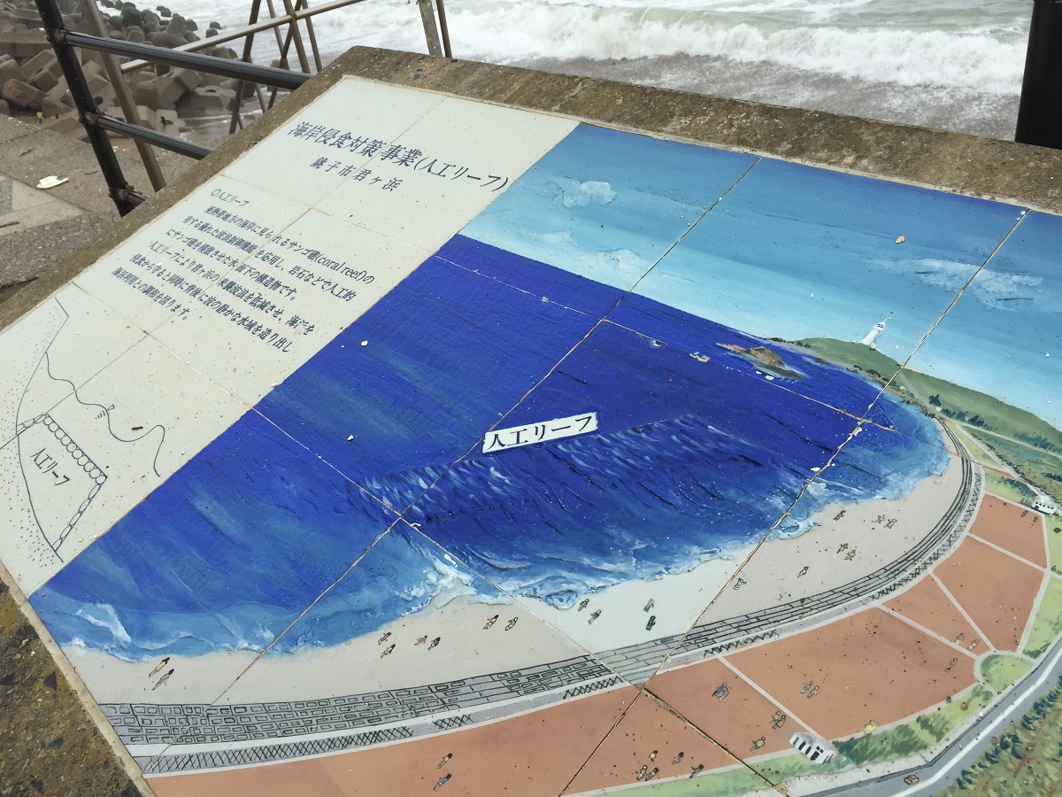 この海岸は浸食が激しいらしく、それをくい止めるための工事の説明があって興味深かったです。