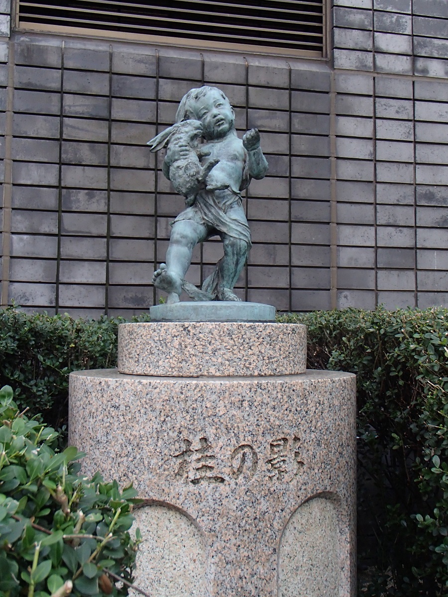 博多の天神の街角にある小さなブロンズ像です。