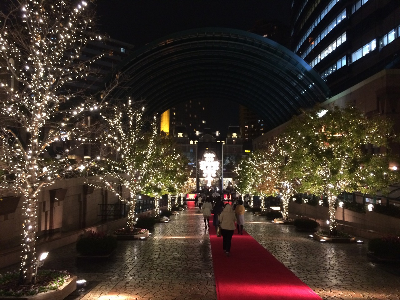 今年のイルミネーション、さっそく行ってきました!行ってみるとすぐに大きなツリーがお出迎え。そして、シャンデリアに向かう途中の道はイルミネーションされていてとっても綺麗です!ほとんどがカップルでイルミネーションを楽しんでいました。