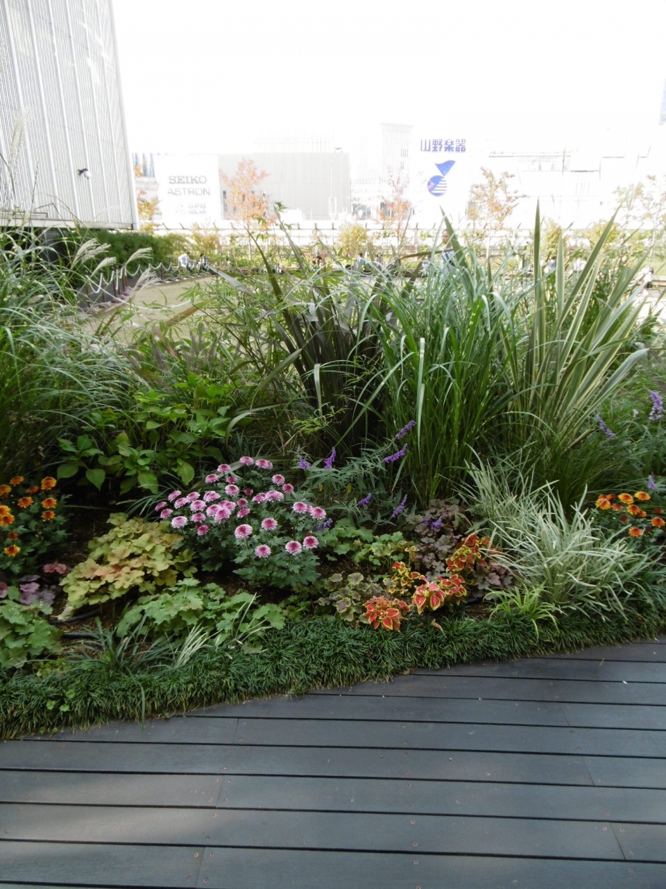 周りはウッドデッキで建物側にテーブルと椅子が用意されているので、同じフロアにあるカフェでテイクアウトして飲食されてる方も。