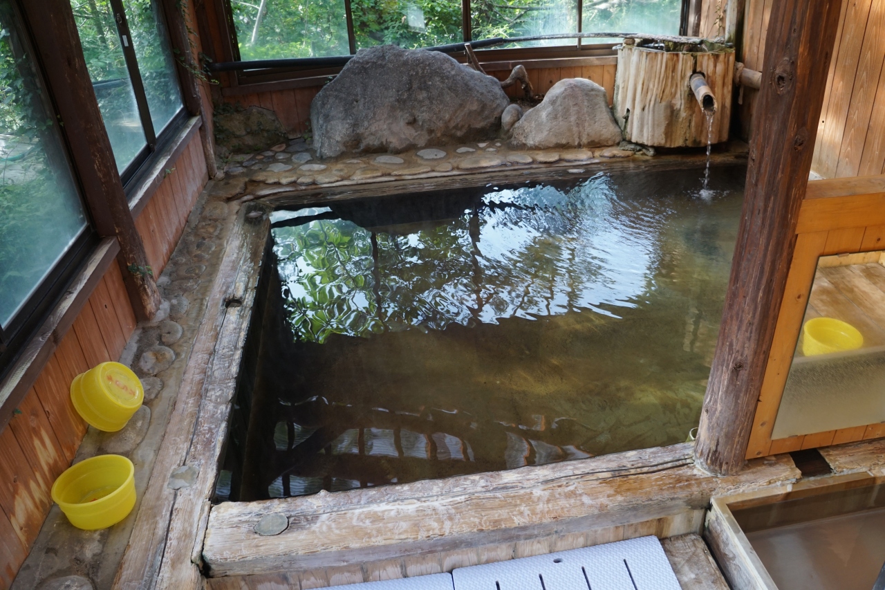 奥飛騨の温泉では、平湯温泉がイコール奥飛騨温泉のような認識もないことはないと思いますが、その他にも、新穂高温泉、栃尾温泉、福地温泉、新平湯温泉といった小さな温泉が点在しています。その中では、福地温泉は古くからの温泉ということでした。私は、石動の湯に入ってみましたが、一見無色透明の湯なのに、湯の花が濃くて湯桶に湯の花がこびりついている。ちょっと名湯の雰囲気がありました。