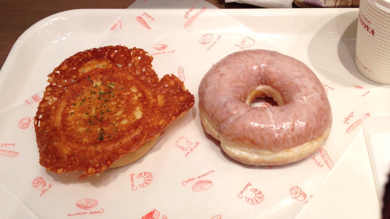 軽井沢のパン屋さん浅野屋の上野駅ナカ店。以前は広かったイートインスペースが端っこに数席だけになっていました。飲み物の種類も減っていました。パンは変わらず種類があり、今回はカレーパンとドーナツを注文。美味しかったです。