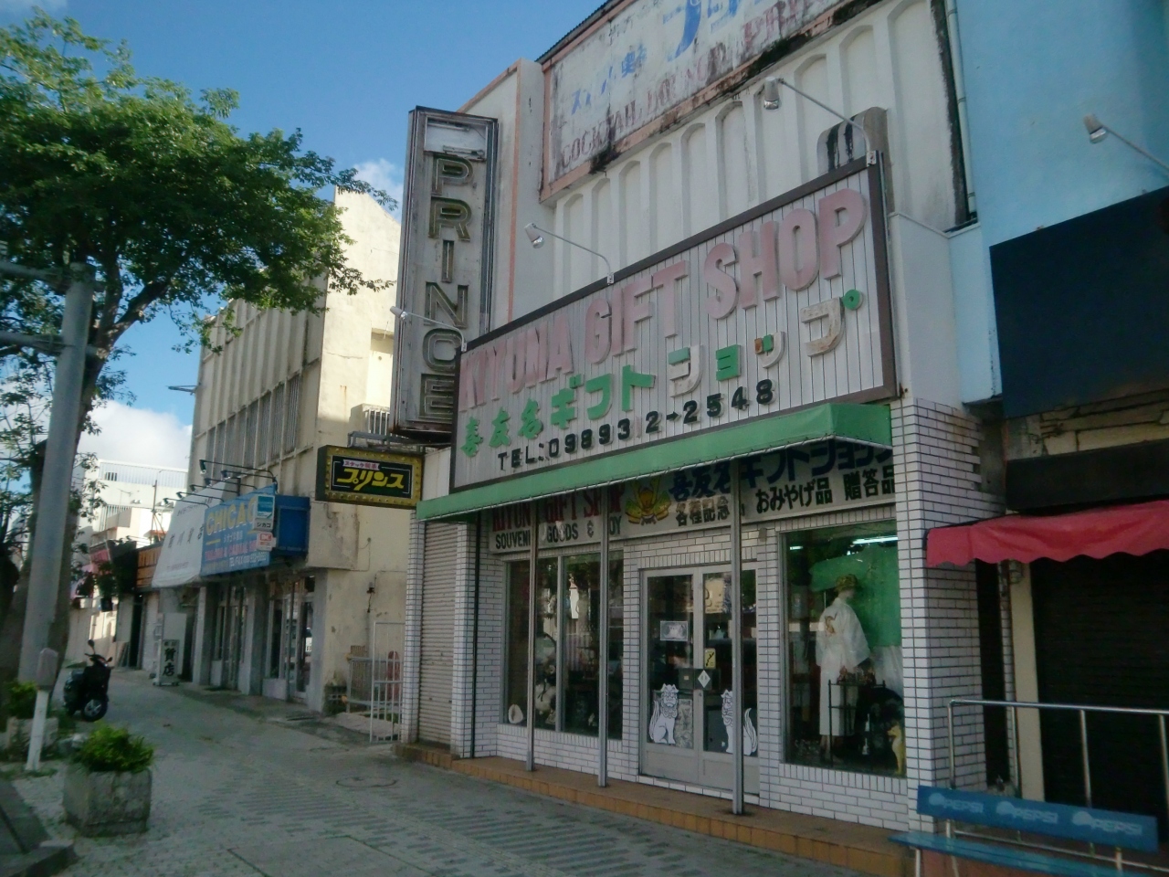 嘉手納基地から胡屋交差点までを結ぶストリートで、米軍相手の店が並びます。
