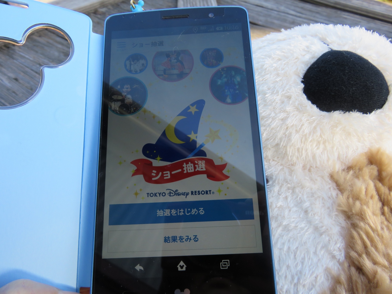 ショー抽選アプリをインストールしておいたので、早速、利用してみた。 結果、当選。