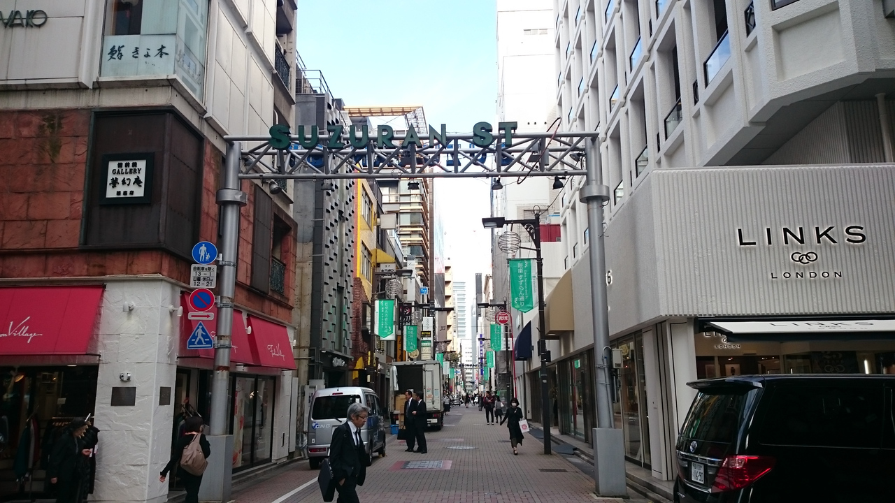 銀座のすずらん通りは、比較的新しい通りです。神田のすずらん通りにあやかって名付けられたそうです。街灯やマンホールのふたまで、すずらんをモチーフにしたデザインとなっています。全体的におしゃれで落ち着いた雰囲気があります。午後は歩行者天国になります。