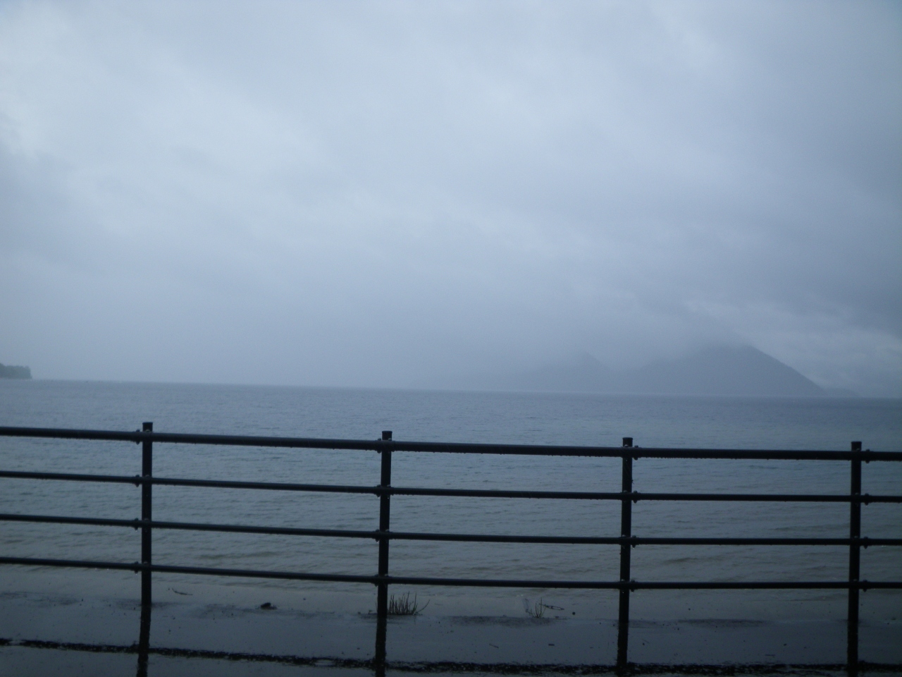 洞爺湖に行くなら中島へ上陸したほうが良いと聞いたので、そのつもりでいましたがあいにくの雨模様…。湖畔からはうっすらと中島の稜線が見える程度の悪天候だったので、今回は見送ることに。HPに遊覧船10%オフクーポンがあるので、行かれる場合は事前にプリントしておくと良いです。