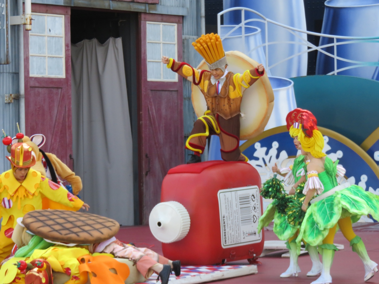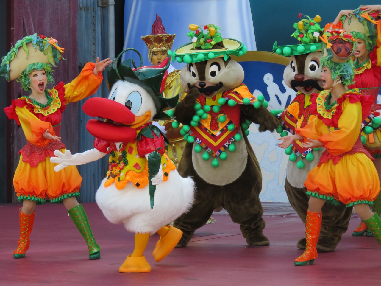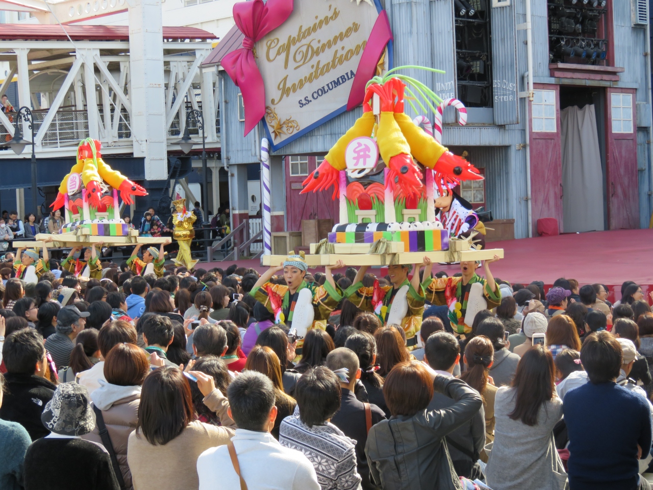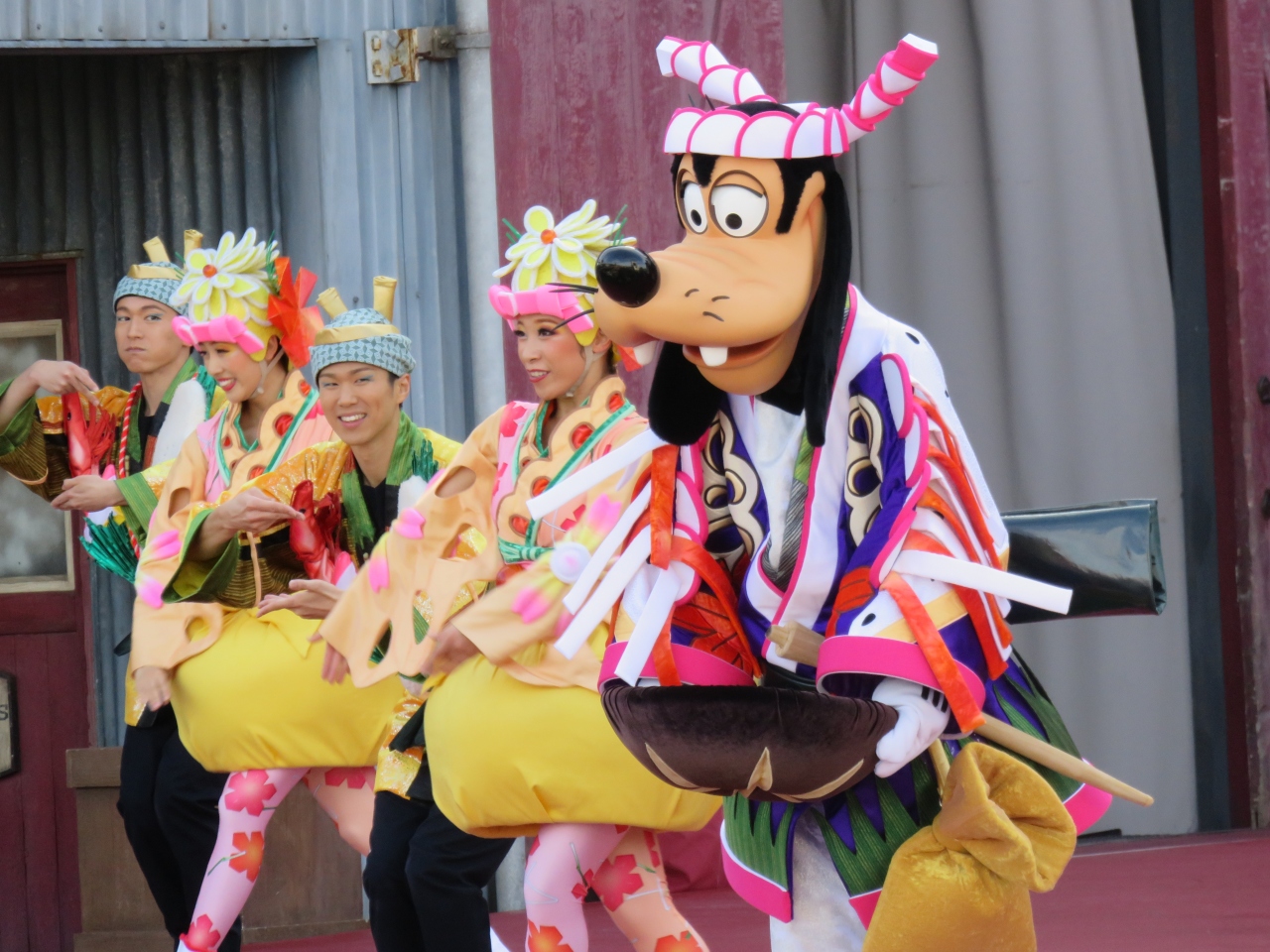 キャラもののダンスは東京ディズニーリゾートによくあるダンスだったが、キャラクターのバク転などのアクロバットは見事。 後半、御神輿が会場内を練り歩き盛り上げてくれる。
