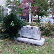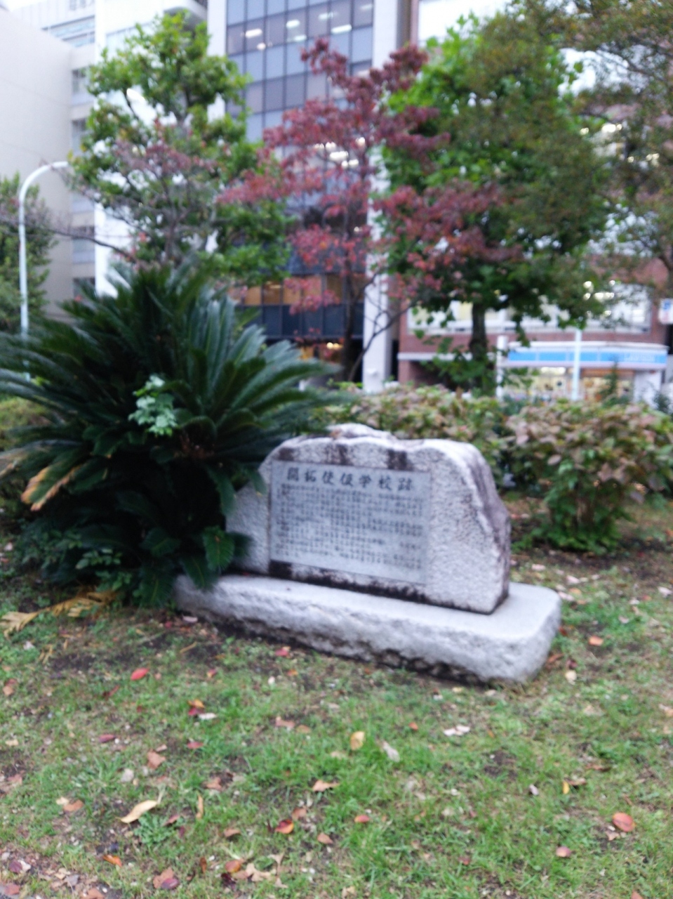 開拓使仮学校跡の石碑は、芝公園の一角(御成門交差点近く)にありました。