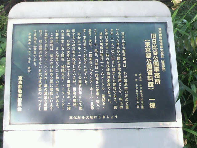 東京都公園資料館は、旧日比谷公園事務所で、明治時代の代表的な洋風建築です。
