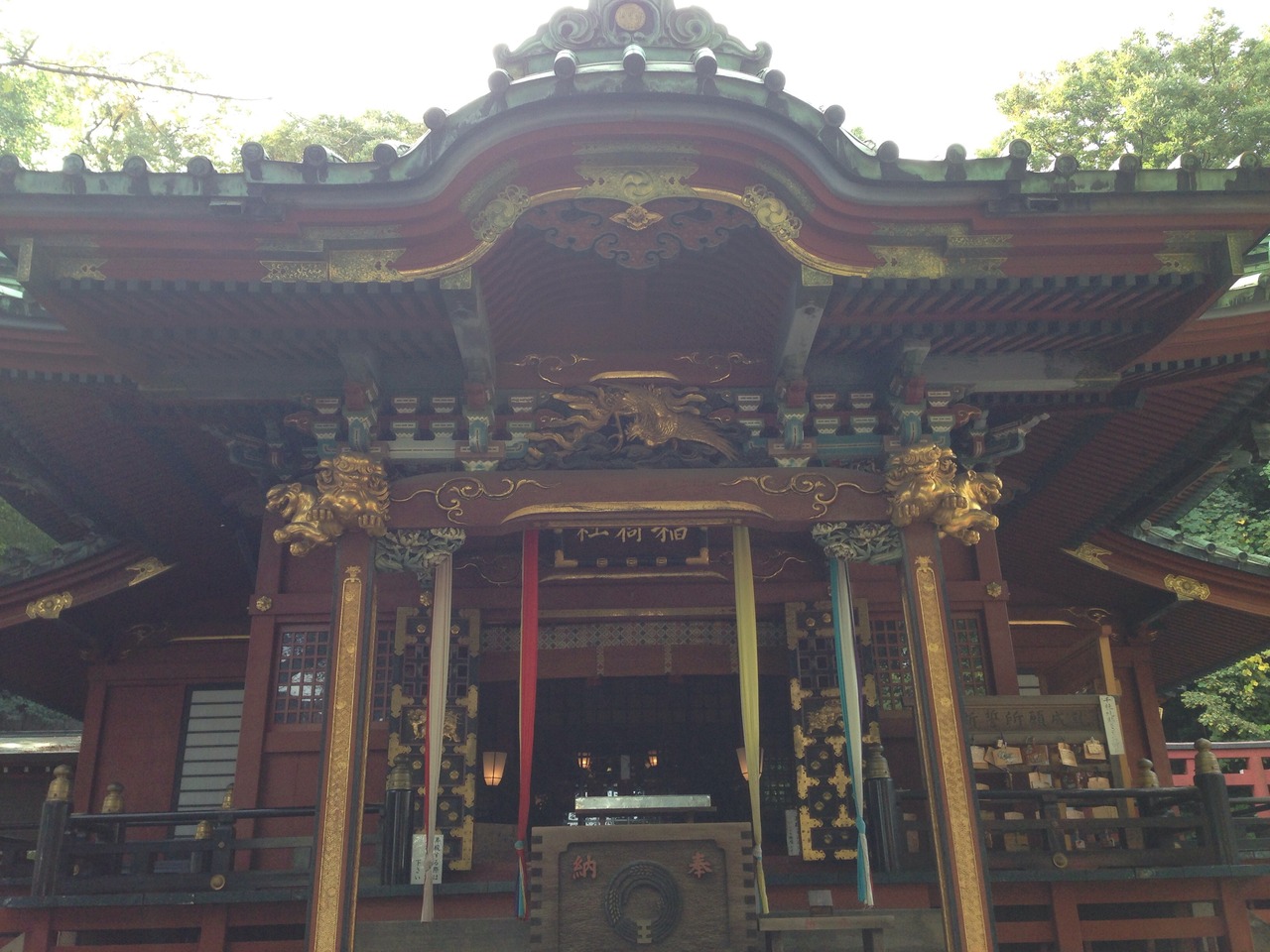 狐さんが迎えてくれます。本殿は金が多く使われていて 煌びやかでした。その右奥にも 神様がいくつか在られます。そのうちの一つの 御石様 願いを思いながら持ち上げ、予想より重かったら願いは叶わない 軽ければ叶う というもの。