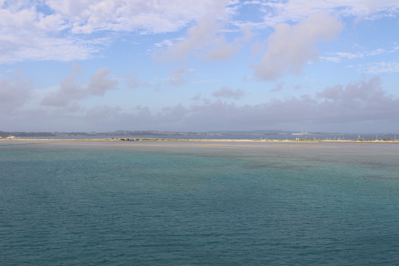 まだ朝早い時間でしたが、海のきれいさと遠くに見える海中道路の景色は
