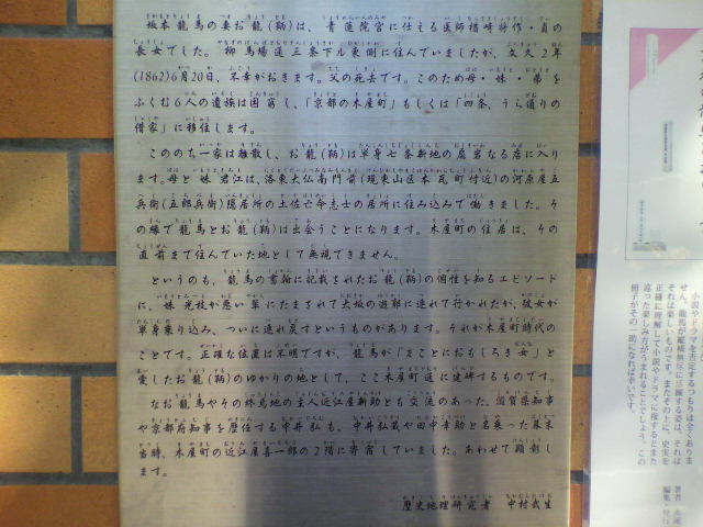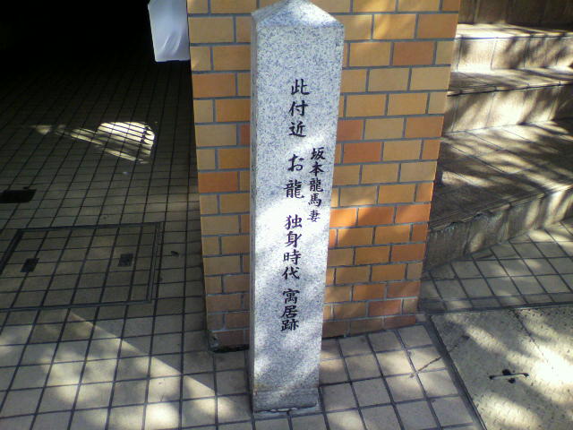 のちに龍馬の妻となるお龍の父がなくなり、母や妹、弟たち6人とこの辺りに住んでいた際はとても困窮していたそうです。正確な位置は不明だそうで「此付近」ということなんですね。