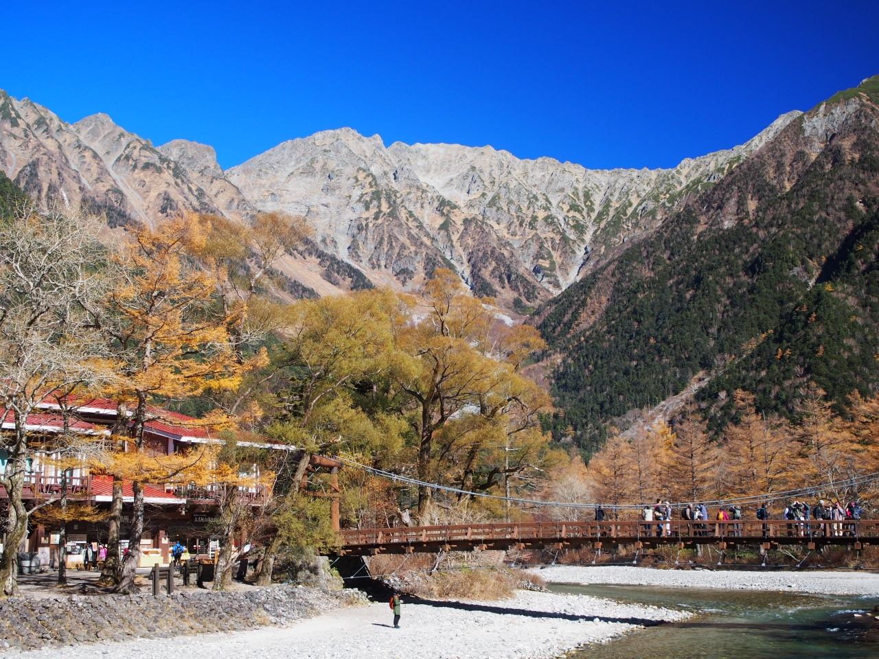 上高地バスターミナルは、松本から電車、バスを乗り継いで