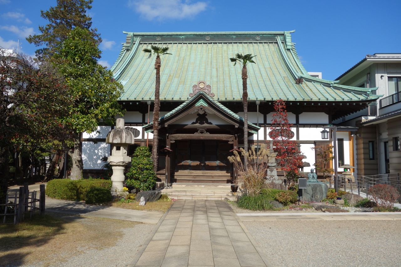 榴ヶ岡駅の南側には寺が集まった一角があります。その中の一軒で、阿弥陀如来を本尊とする浄土宗の寺です。江戸の初期、慶長15年(1610年)に開山。立派な山門と緑の屋根の本堂が印象的です。鐘楼もあります。