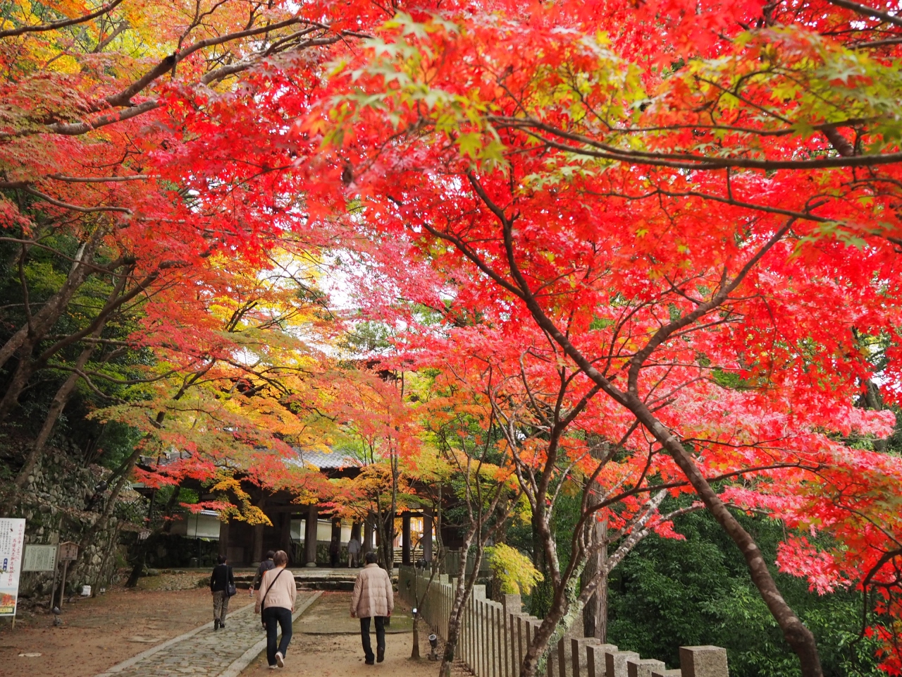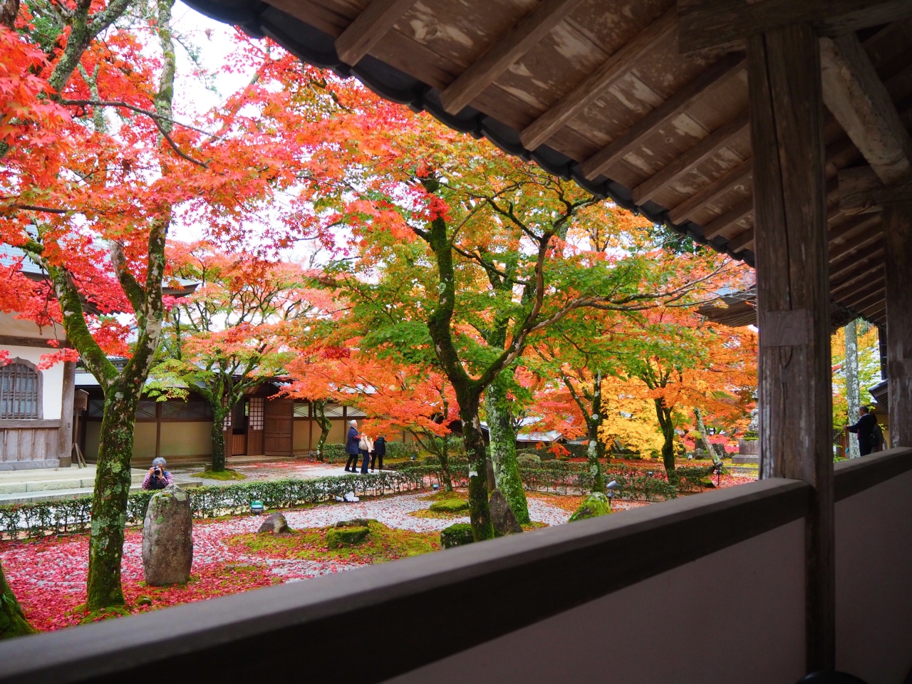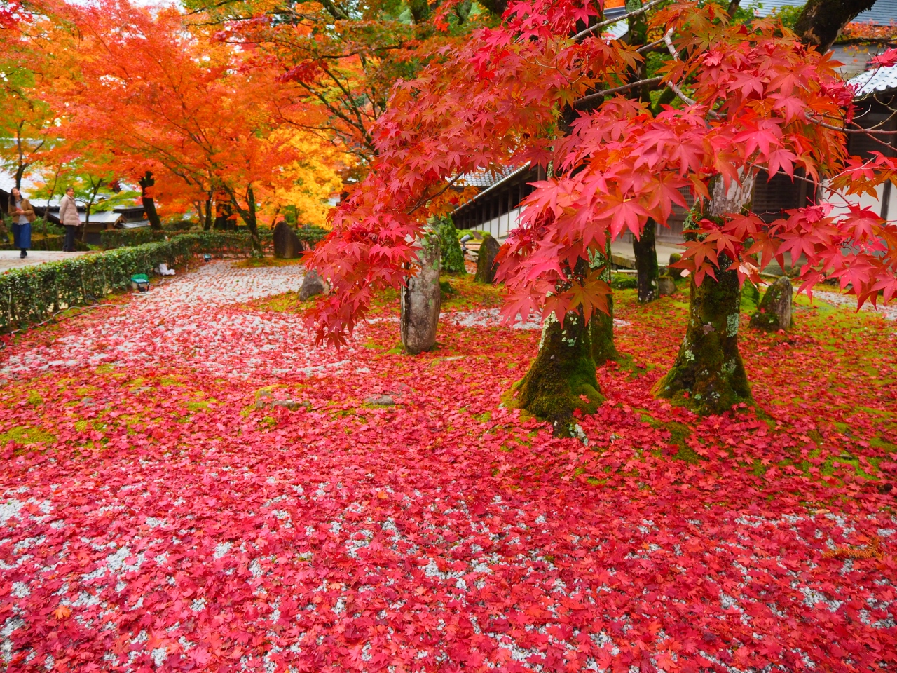 お庭のお手植えの紅葉は真っ赤に色づき落葉も始まっています。お寺の方の話では21日~の三連休よりはお天気が悪くても今週末に訪れるのがいいだろうとのこと。