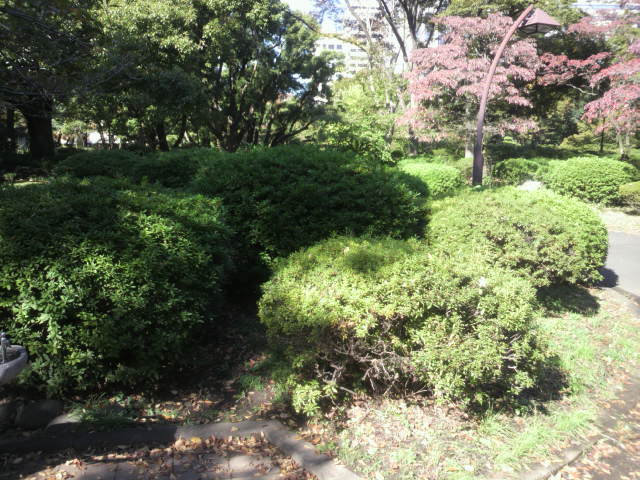日比谷公園の案内地図には、共生しているツツジの山として記されています。